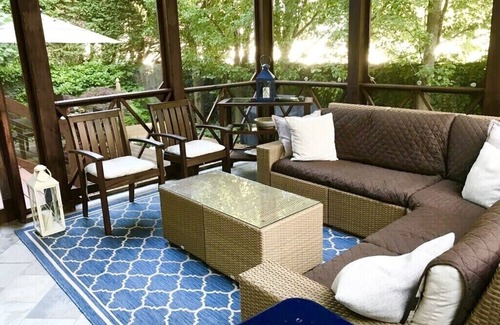 98 Sussex Street is a quiet location but steps from Rehoboth Ave! 3,500 sq feet of luxury built in 2006 so no musty smell or small rooms. Open floor plan with a great room where the kitchen, living room and dining room are all one room. It feels even bigger with 10 foot ceilings! Chefs kitchen with all amenities. All 4 bedrooms have their own private full bathroom, 4 Queen beds + 1 King in the master + 2 twin mattresses for kids. Three bedrooms have access to private balconies. Plenty of places to retreat. Lots of outdoor spaces. 3 patio/deck areas, one large screened in porch and a backyard deck with patio table / umbrella. Upstairs there is a den area with TV and game console. Family friendly / recommended for families. There is a pack n play, toddler cot, stroller and high chair. There are two twin mattresses. There is off-street parking for 2-3 cars and two residential transferable parking pass will be available for your use during your stay. Jenn-Air and Bosch kitchen appliances. Electrolux washing machine. Xfinity cable and Roku TV in every bedroom.