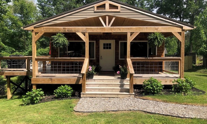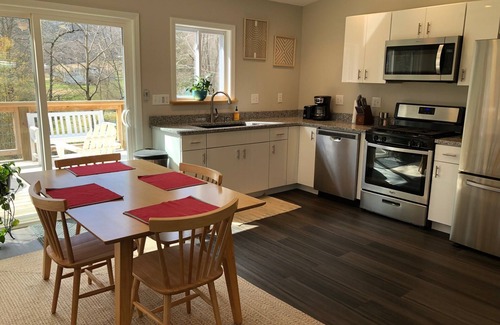 Relax with the whole family at this peaceful, newly built home. Located about a mile from downtown Fayetteville and 1.5 miles from the New River Gorge, enjoy all that Fayetteville has to offer from a private, two-bedroom, two-bathroom home. Relax in the shade on the covered front porch, and enjoy the sunshine from the outdoor seating and dining table on the back porch. Use the fully equipped kitchen and outdoor gas grill for home cooked meals between your West Virginia adventures.