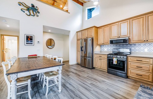 At the end of a day exploring, fire up the gas grill at home for an evening cookout. Stream your favorite movies in the loft upstairs, play a friendly game of ping-pong, or grab a board game for some more together time. Call it a night in one of two comfortable bedrooms, but not before toasting your good luck at booking such a charming coastal escape.
