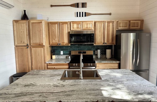 Looking for a quick get away, time with family or friends or escape the everyday routine….Deer Creek cabin awaits. This NEW cozy lake front cabin features 2 bedrooms, 1 sofa sleeper and 1 bathroom with an open concept throughout kitchen, living and dining area with amazing lake views. For outdoor activities, Deer Creek cabin features a full sized deck, 12’x14’ swimming and fishing dock. Cleats for boat tie up. Ladder for in and out of water access, propane grill, fire pit, fishing, horse shoes, kayaks, and paddle boarding. Enjoy outdoor dining at Possum Hollow and Hungry Fox Restaurant located 5 mile proximity.