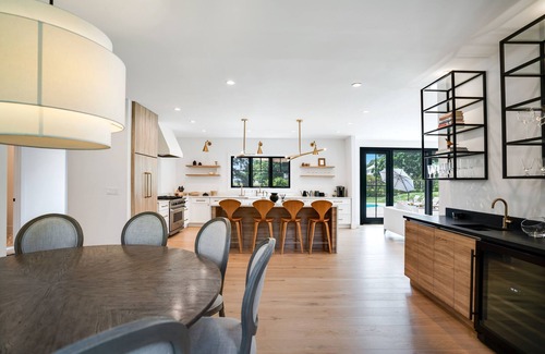 Bright, light, modern and sophisticated. This newly constructed home (in 2022) has gorgeous touches throughout including brand new bathrooms, kitchen, wood floors and furniture. The kitchen is modern, with stainless appliances, a beautiful island/breakfast counter and a modern dining room. The great room has floor to ceiling windows which highlight incredible sunsets.