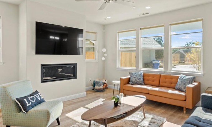 This property offers access to a patio and free private parking. With free Wifi, this 3-bedroom vacation home provides a flat-screen TV, a washing machine, and a fully equipped kitchen with a dishwasher and oven. Featuring air conditioning, this unit has a dressing room and a fireplace. The accommodation is non-smoking. The nearest airport is Stockton Metropolitan Airport, 60 miles from Newly Built Murphys Modern Retreat.