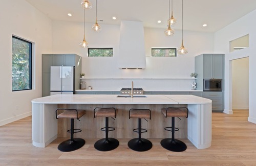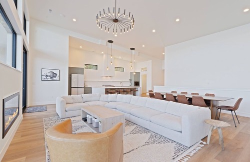 Upon entering the home you will immediately experience the luxury of the home combined with sweeping views of the lake. You will be impressed with the large indoor/outdoor fireplace that creates the perfect atmosphere for a cozy evening watching the sunset. Large indoor and outdoor tables were designed to support lots of seating for meals. The kitchen comes with the newest appliances. Enjoy the two different types of speciality ice cubes in the new Samsung Bespoke fridge. Relax on the large sectional to enjoy a movie or just take in the views.