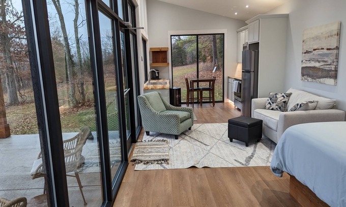 Enjoy beautiful views of nature when you stay in this unique place! Large windows on two sides of the home make it a truly serene space. Conveniently located, you will be less than a half mile from Casey Jones Distillery, less than 10 minutes from downtown Hopkinsville, 15 minutes from Fort Campbell Army Base, 20 minutes from exit 1 in Clarksville, and 30 minutes from Land Between the Lakes Recreational Area. Come enjoy views of nature and wildlife in the comfort of your home!