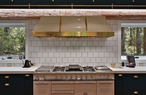 A gourmet kitchen featuring a 72" Lacanche range with every imaginable tool and appliance.