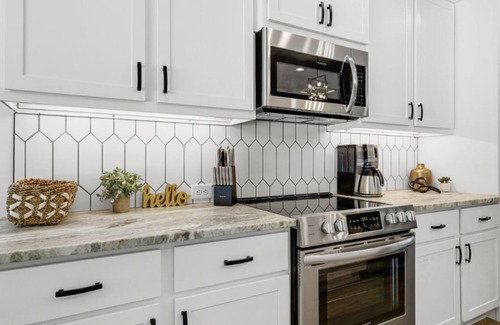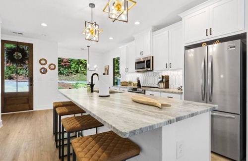 This newly constructed modern farmhouse is finished with all the fine details. An open concept floorplan with two-story ceilings and large windows allowing natural light to brighten the spacious living room and kitchen. A loft upstairs with a queen sleeper sofa provides ample space for additional guests that are sharing in your relaxing getaway!