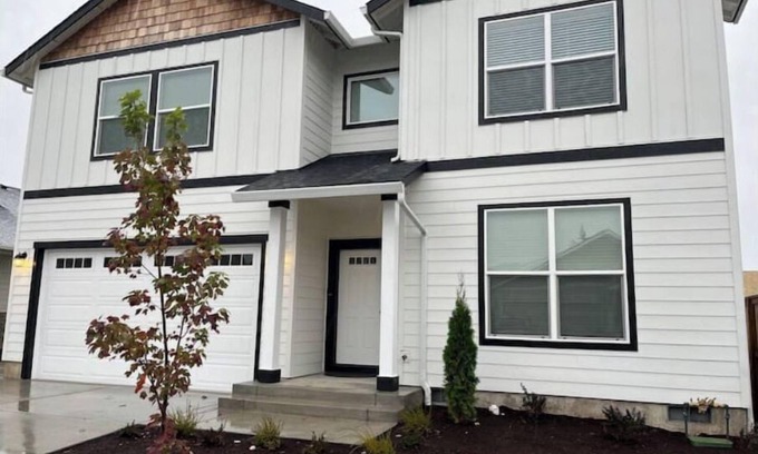Brand new constructed home in Springfield, close to Autzen stadium and University of Oregon. This spacious 4-bedroom plus den/office is ideal for family gatherings, game day celebrations, and university visits. The house can sleep 10 comfortably with all new accommodations. Brand-new furnishings, appliances and fresh amenities in each room. It is located in a quiet, family-friendly neighborhood. It is close to trails for biking, running and the Willamette River for a view of the ducks. The master bedroom and bedroom #1 have brand new king beds. Bedrooms 3 and 4 have brand new full beds. The den has a pull-out sofa for additional sleeping and work area. The large kitchen has all new appliances, fully stocked with space for cooking. All furnishings are new, and amenities include a 75-inch tv with streaming, Wi-Fi for the dedicated workspace. The large dining room area seats twelve. Plenty of parking available for cars in the attached two car garage or large driveway. Guest access. Entire house is accessible. Other things to note: This is a non-smoking home and no pets allowed upstairs.