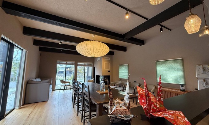 Located in the heart of the old town this spacious traditional house with a balcony along the clear stream in front of the Miyagawa Morning Market was renovated in 2024 and is comfortable warm in winter and cool in summer There are many delicious bakeries cafes and restaurants nearby within walking distance Its worth coming to Takayama just to stroll through the shrines and quiet old townscape There are two bedrooms two kitchens two living rooms two shower spaces and two toilets / This is a luxurious old house with a balcony along the clear Miyagawa River The interior is filled with a wooden feel and the cypress bathtub The Miyagawa Morning Market is just a 30second walk away so you can enjoy the view from the balcony