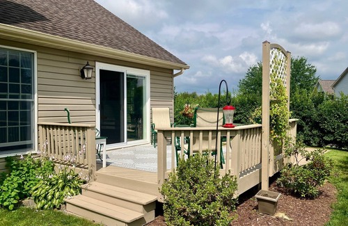 Attractive 3-BR ranch with large living room, attractive kitchen and dining room with views of garden, patio, deck, adjacent open common area and paved bike/ped trail. Wide driveway can accommodate 9 cars in off-street parking. Just 5 miles to Beaver Stadium, 2.5 mi to shuttle bus stop with parking.