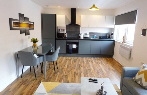 This spacious apartment has a beautiful open living space with plenty of natural light. The living area has a comfortable sofa which doubles up as sofa bed should you require and smart tv with freeview channels and Netflix.