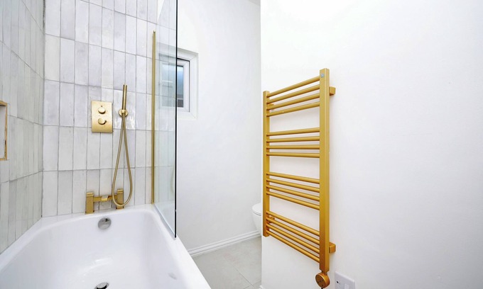 Indulge in this newly refubished apartment in the vibrant area of Leyton. On your doorstep you have Hackney and leyton marshes, and a short walk from vibrant chatsworth road and Clapton. The apartment itself is warm and cosy, with mellow tones throughout. Large bedrooms and dimmed lighting throughout to match your mood. The spa style bathroom will keep you refreshed throughout your stay. The fully equipped kitchen will have you feeling as if your at home, away from home. Lastly the slatted panelled garden is the perfect place to relax in the summer, this beautiful decked terrace will be the perfect place to put your feet up after your busy day in London. You will not be dissapointed by the style of this spacious victorian apartment and the trendy and artisitic Location.