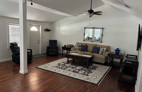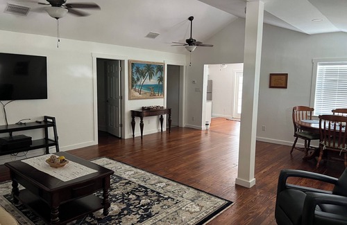 Consider this house your home away from home while you visit Everglades City. This cozy retreat offers a tremendous living room with a queen sofa bed for extra guests. The tranquil bedroom provides a peaceful night's sleep after a day of exploring. Walking distance to restaurants and excursions! Two front porches. And a short distance to your own dock to go fishing from! We'll be available to answer any questions while you stay at our place!