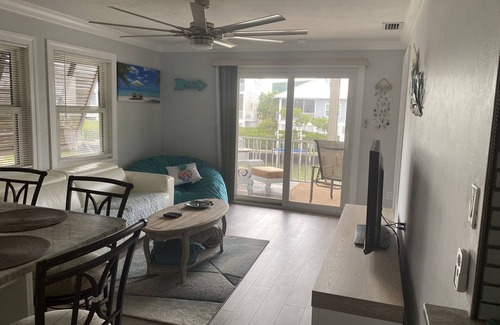 1 king bedroom 1 bath, living room kitchen and laundry! With screened in porch on canal! Come watch the dolphins and enjoy the sunshine! Great fishing and 4 restaurants that have live bands! Walking distance to 3 marinas! 2 bikes and a screened in pool!