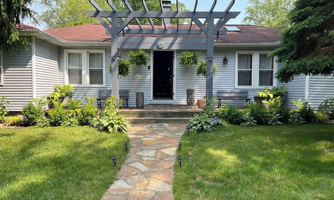 Just a short (5-7min) walk to Lake Michigan shore. Private association beach. Our place has everything you would need for a great stay. Many restaurants around ( driving distance or short bike ride). We're just a block away from Blue plate cafe( serving breakfast and lunch). Farms for picking fresh peaches, cherries, apples and blackberries. Lots of things to do in addition to just relaxing on the beach.