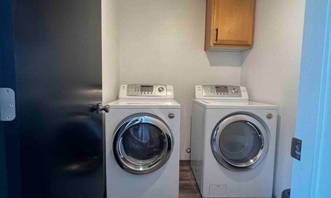 Kick back and relax in this calm, stylish space. Quiet neighborhood with off street parking. This home sleeps 6. 1 King bed, 1 Queen bed and 2 Twin beds. Perfect for a gathering with friends and family. High speed fiber internet for the traveling worker. Great for short stays but equipped for the long term stays too.
