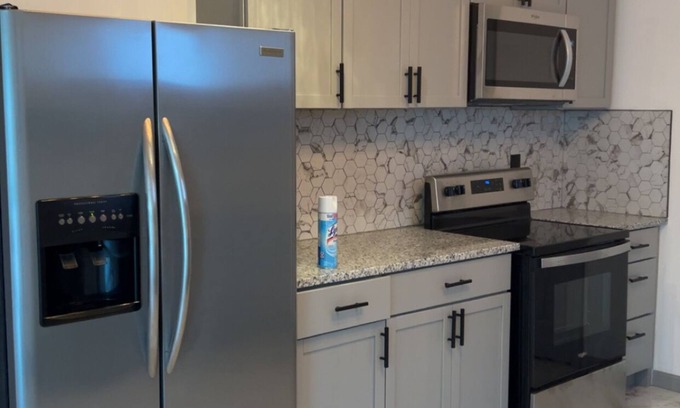 Your cozy getaway awaits in Kansas City at this newly remodeled house inside and out! Enjoy a brand new kitchen with stainless steel appliances and equipped with everything you need to prepare your favorite home cooked meals. The adjacent dining room is perfect to enjoy your morning coffee and meals while you enjoy the view of the backyard through the sliding doors. The living room features comfortable seating and a flat screen tv. The home is equipped with 3 queen beds and flat screen TVs in all the bedrooms. The home has Google Fiber internet and a dedicated workspace in the master bedroom. The laundry room is available if you have a minimum stay of 1 week. Enjoy the backyard with built in seating and a firepit. It’s completely fenced in for your privacy. This home is centrally located and only 6 miles from the Chiefs Stadium and 5 miles from downtown. It’s also near the Plaza, Westport and other popular attractions, shops and restaurants.