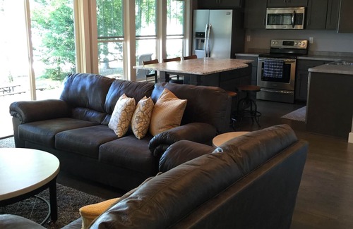 The cottage sleeps 8 comfortably, with 2 spacious bedrooms on the 1st floor, a master bedroom with queen bed on the 2nd floor with sweeping lake views and a fourth bedroom with double bed on the 2nd floor. Beautifully remodeled full bathroom on first floor and a half bath on the second floor. After extensive renovations, guests will enjoy an open concept kitchen/living room area with a grand, stone, wood burning fireplace. The fresh new kitchen area has modern maple cabinets with a huge granite topped island for great family meals. The spacious cottage has new wood flooring throughout and amazing views of the lake.