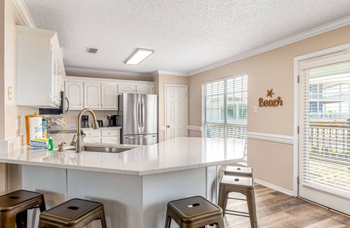 Coastal vibes rule at this newly remodeled home by the bay! All set up to welcome guests, this home features essential amenities like central air conditioning to help everyone get comfortable - plus extras like a private gas grill to set the right tone for your vacation. Deck fans will appreciate the furnished balcony patio spaces. The patio underneath the home (the hammock in particular) might become your favorite place to hang out after a day at the beach. Inside, a desk workspace is set up for anyone who needs to complete remote work or schooling before heading to the beach. Everyone can enjoy cooking up tasty meals together in the full kitchen, which features full-size appliances (including a French door fridge) and a long breakfast bar with room for three guests to enjoy a casual meal. Enjoy views of the bay as you plan your next jaunt to the beach - it's just a short walk away.