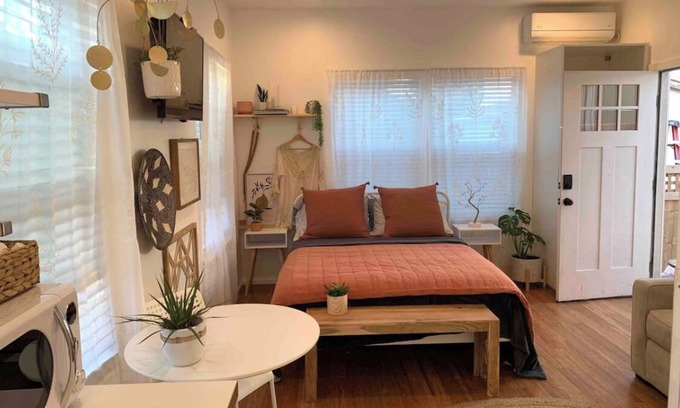 ***Same night booking requires Host manual booking, please send them a request.*** This Studio is private and great for that person on the go. The unit comes with mini Fridge/freezer, microwave, TV WiFi, Netflix, Disney+, Apple TV+, Max, and Amazon Video. It has a large bathroom along with a keyless entry through a side gate. Even though the space is small it feels much larger than you might think due to the high ceiling and tall windows.
