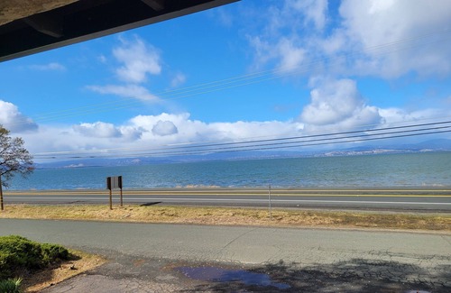 There is a huge, terra cotta tiled veranda with stunning westerly views of the lake and its north trekking coastline. This upstairs unit has a dedicated entrance with 2 parking spaces. It is across from Davis Beach and its scenic rest stop (State Highway 20).