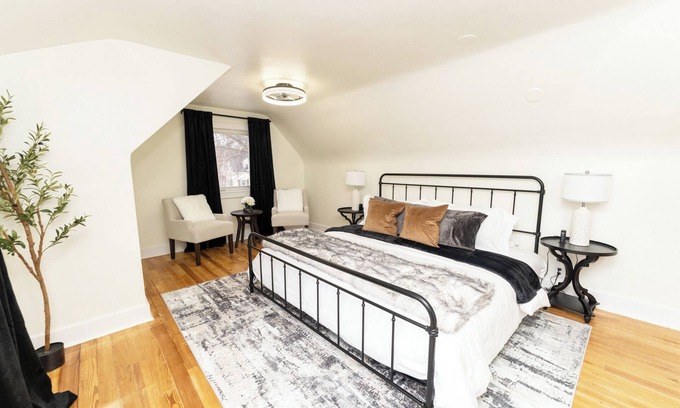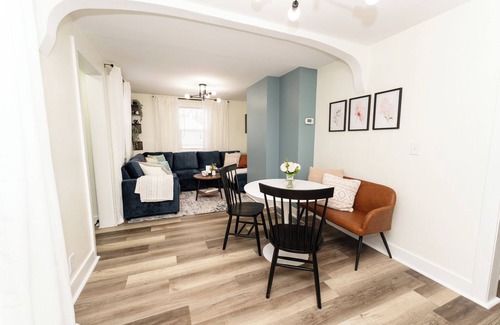 Fresh, stylish and steps from everything. Walk to it all! Steps from CMU campus, coffee shop, and restaurants. This charming property features 2 bedrooms with a king bed and a full bed. The upstairs floor of this house is the entire King bedroom. The Full Bedroom is on the first floor, right next to the kitchen. Enjoy the cozy living room with a sofa bed for extra guests. The bathroom is equipped with a shower and a hairdryer for your convenience. Guests boast of the prime location, beauty, full basement for big and little kids to play, and the pristine cleanliness of the home.