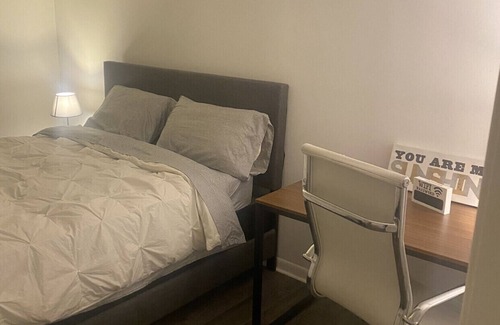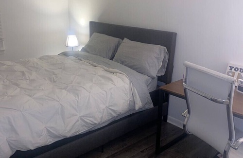 Relax and unwind in this charming and renovated apartment. This lovely 1 bedroom apartment would be a perfect stay for family or friends! This newly remodeled apartment includes a dining room and living area with brand new kitchenware, towels, sheets, desk to study or work, 1 queen size bed and 1 Rollaway bed.