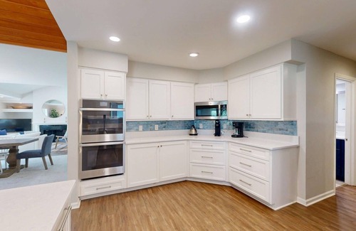 Step inside to discover a bright and airy open-concept layout, featuring a spacious living area ideal for gathering with family and friends. The kitchen is a nicely appointed, with modern appliances, sleek countertops which opens to a cozy breakfast area with seating for 8.