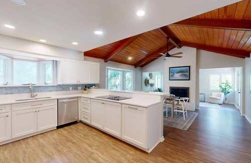 Experience the ultimate beach getaway at this newly renovated 5-bedroom, 4-bathroom home, perfectly situated just a less than 5 minute stroll from the sand. Designed for effortless indoor-outdoor living, this property offers everything you need for a relaxing and memorable vacation.