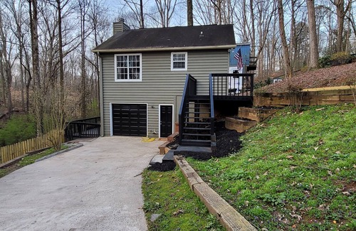 Welcome to our newly remodeled cozy GA home. Central location that is an hour away from Atlanta, within walking distance of Lake Lanier, over a mile away to Six Mile Creek, near vineyards and breweries, cool shopping & restaurants, and close to the Blue Ridge Mountains. This home holds an upper/lower parking area that easily fits a boat. It has a beautiful serene deck, boasts an open floor concept with a fireplace as its focal point, and a basement that which holds a laundry room/ a full bedroom/ and a den. If all you want to do is relax as you drink your cup of coffee while listening to the birds chirping and perhaps even witness a family of deer crossing through our backyard, this COZY GA Getaway is just for you!