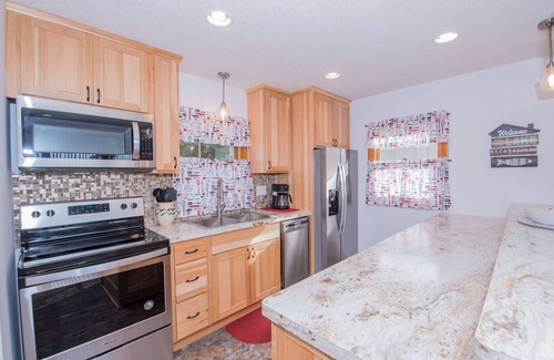 Updated kitchen and fully furnished cabin with everything you need to enjoy your time away and vacation all year round.