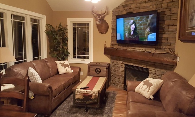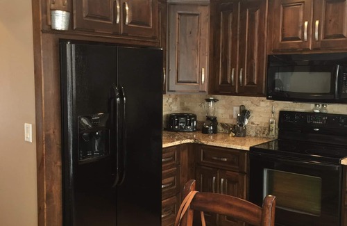 *This town home has Large flat screen TV's in Living Room and Both Bedrooms. All new kitchen cabinets, Side by Side Refrigerator with Ice Maker, Electric Stove, Microwave, and includes Dishwasher, Keurig Coffee pot, Regular 12 c coffee pot, all your kitchen utensils and pots/pans, DVD player, New Flooring through out, and new Furniture.. Relax by the gas fireplace indoor or sit out in the back yard by the fire pit just bring some firewood! We kindly ask that you put the chairs on the gravel next to the deck when not in use. The landscapers will not cut the grass if the chairs are in the way. There is Cable, WIFI, .. The sofa pulls out a queen sleeper. Washer and dryer in the unit. Small dogs OK.. There is a pet fee of $50 per dog.
