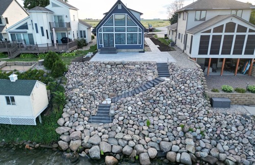Make yourself at home in this 4-bedroom Storm Lake retreat. Nestled in a tranquil neighborhood, this amazing house offers a beautiful escape for guests. With 4 bedrooms, each with a queen bed and an en-suite, everyone will have a place to rest after a day of exploring. The house is equipped with all the essentials including laundry. Whether you're lounging in the spacious living area, enjoying a meal in the fully equipped kitchen, or on the large outdoor patio by the lake, this retreat provides a comfortable and inviting atmosphere.