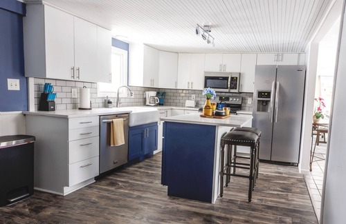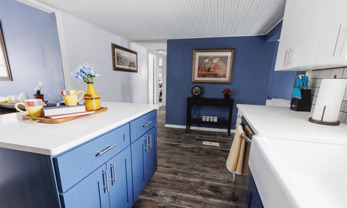 This newly remodeled home features two living rooms both with 50" Roku Tv's. It also has a roomy kitchen with a farmhouse sink, convection oven, large fridge, dishwasher, microwave and island to gather around. There's also an additional reading area that's great to cozy up and read a good book (we have quite a few to pick from) or play one of our board games. The home also features a large dining room table that easily seats 8 but we provide extra chairs to squeeze in even more around the table if so desired. This is great if you have a large group and want to play some fun board games or have a great family meal.