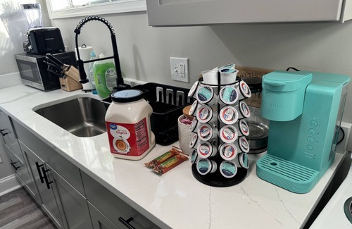 The living room comes with a 55-inch Smart TV, where you can relax and stream all your favorite shows. The 4-seater dining room allows you to share a meal with friend and family in your home away from home. The fully stocked kitchen with brand new appliances (refrigerator & electric stove) allows you to the option to cook.