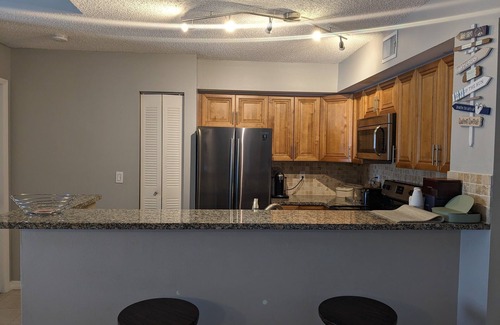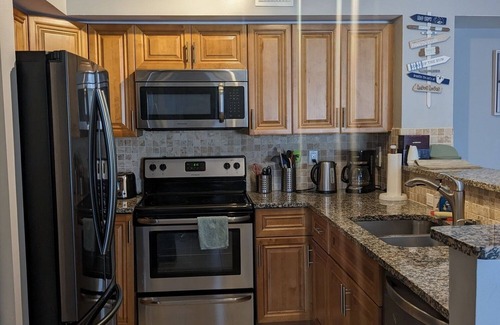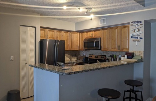 Condo has all the amenities of your own home, the kitchen is well stocked with pots and pans, utensils and everything you may need.