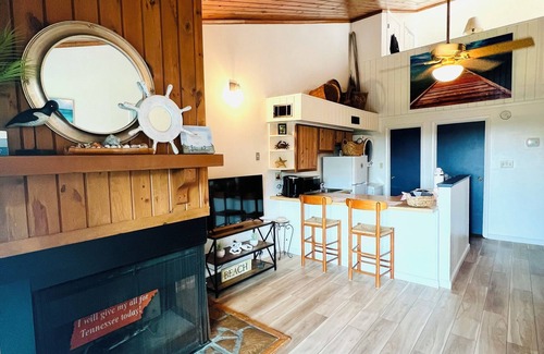 - Golf course adjacent, beach-themed condo with sunroom, washer/dryer, & AC