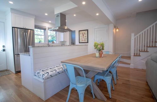 Welcome to this beautifully renovated 6 bedroom, 2 bath townhouse! You'll notice a beautiful open and sunny first floor with newly updated kitchen, dining area with expandable table to seat up to 10, and cozy living room with 55" smart TV. A full bathroom and one bedroom completes the first floor. The second floor contains 3 bedrooms and one full bathroom, including a master bedroom with King sized bed with a lovely porch/balcony. Continue on to the third floor to find the last two bedrooms.