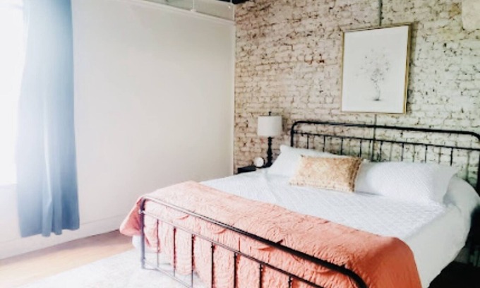 Our building dates back to the 1800’s and has been recently renovated and professionally decorated to bring back its original charm. Exposed brick, exposed original tin ceiling, original hardwood floors. The 1200 sq ft apartment has 2 bedrooms, large living area with a sectional couch, dining room has a table to seat 8, bathroom has full laundry, new full furnished kitchen. The unit is located above Aunt Emmy’s Coffeehouse & Sweetery (has a separate entrance), right in the heart of downtown. The unit sleeps 4 adults comfortably. Close to shopping, eateries and bars/brewery.