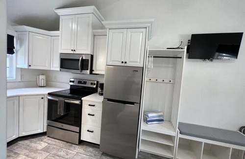 - Fully Equipped Kitchen: Create home-cooked meals together in the full-size kitchen featuring modern amenities, including quartz countertops, perfect for romantic dinners or pre-wedding gatherings.