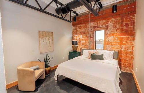 The space is industrial, modern, with earth tones and incredible luxury from stainless steel GE appliances to lavish bathroom and stackable washer/dryers just name a bit. The space is conveniently located downtown Jacksonville, Texas with loads of places to visit.