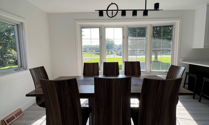 Discover the ultimate lakeside retreat at our exquisite 7-bedroom chalet, conveniently located near the renowned Calypso Water Park and the enchanting Vankleek Hill Vineyard. With direct water access, a captivating fire pit, and a shimmering pool, it's an ideal setting for retreats and parties alike. Indoors, rustic charm meets modern luxury. Whether you're planning a serene escape or a lively celebration, this is the perfect place to create unforgettable memories. Book now for an extraordinary experience that combines water, relaxation, and easy access to nearby attractions, all in one stunning location.