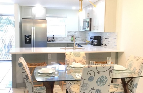 - Bright, one-level home, Florida room, Sony 85” 4k TV, W/D & AC - near the beach