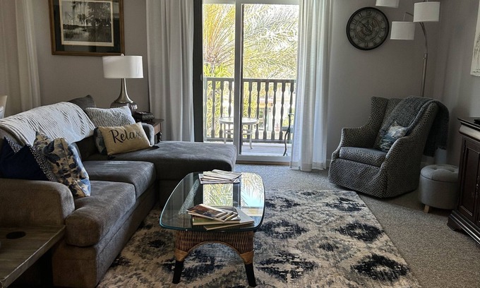 Newly renovated condo. One bedroom, one full bathroom. Laterra Condominiums and Spa has lobby swimming pool, Also 2 golf clubs open to public within The World Golf Village. A 24/7 Security gate. Guests are texted pass for length of stay. A lockbox outside the lobby entrance has Unit 306 room key& fob. The access code will be texted the day of checkin. Also has fitness center, heated lap pool, a Lazy River pool, tennis & pickle ball courts. Close to the beaches, golf clubs, and historic downtown St. Augustine, oldest city in the USA. Complimentary coffee/tea, bottled water. Many towels, washer & dryer, inflatable air mattress if needed, size Queen & Twin. AT&T Fiber wifi, 2 smart TV’s, free parking, luggage carts in pull up lobby. Beautifully maintained grounds, very quiet peaceful setting. Minimal traffic. Easy to navigate to on your GPS. 955 Registry Blvd UNIT 306, St. Augustine, FL 32092.