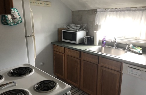 The Kitchen is complete with a full size refrigerator, oven, microwave and dishwasher.