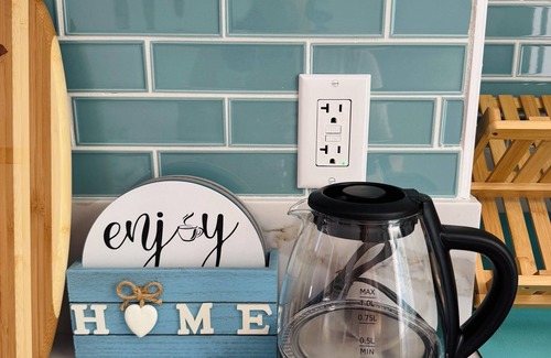 Welcome to your perfect island escape! This freshly designed studio brings the beach and ocean vibes, featuring calming coastal décor, sea turtle accents, and surfboards inspired by Hawaii’s natural beauty.