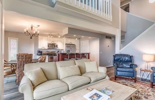 Bluff Villa is comfortably furnished, tastefully decorated, and fully equipped for all your vacation needs. Large windows in this home allow for natural light to flow throughout the villa. This home features a beautifully remodeled kitchen with new stainless steel appliances, a custom granite island, dining area, living room, and laundry room. There is a King master bedroom suite on the first floor with cable TV, a king-size bedroom on the second level with cable TV, and a private bedroom with 2 twin beds. There is also a full shared bathroom located on the second level.