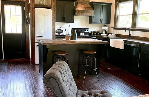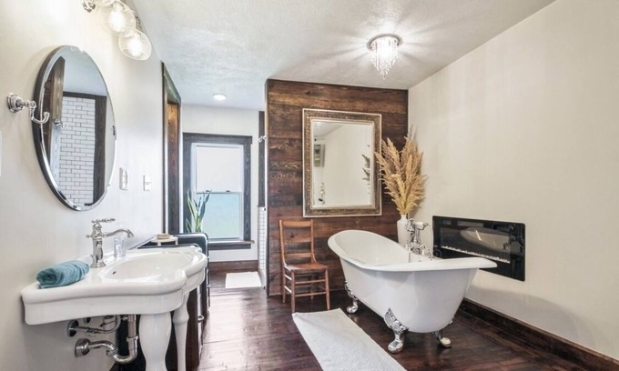 Newly renovated 1900’s farmhouse with attention to detail. Historic home with current new fixtures. This gorgeous home has beautiful bathroom with a large shower and a double slipper clawfoot tub. We hope you enjoy your stay in our fully restored historic home. Only a short walk to to restaurant and bar.