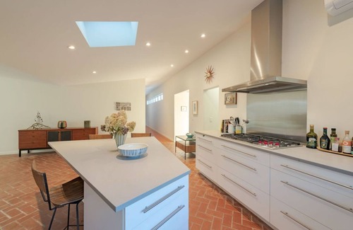 - Stylish Comfort: The home combines mid-century aesthetics with contemporary comforts, featuring luxurious furnishings and gorgeous bathrooms to help you unwind after your special day.