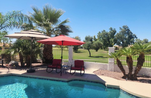- Ocotillo Lakes with pool heater, golf views, BBQ