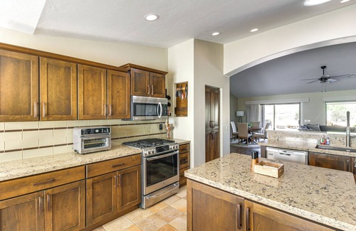 Enjoy an ideal balance of relaxation and recreation at this Tucson vacation rental in the Saddlebrooke community! Boasting a beautiful backyard oasis, this 2-bedroom, 2-bath home is ideal for soaking up the sun and spending time with loved ones. Ready to venture out? Explore Catalina State Park or take the golf cart to an afternoon tee time. After blissful days, dine al fresco and swim in the private pool!